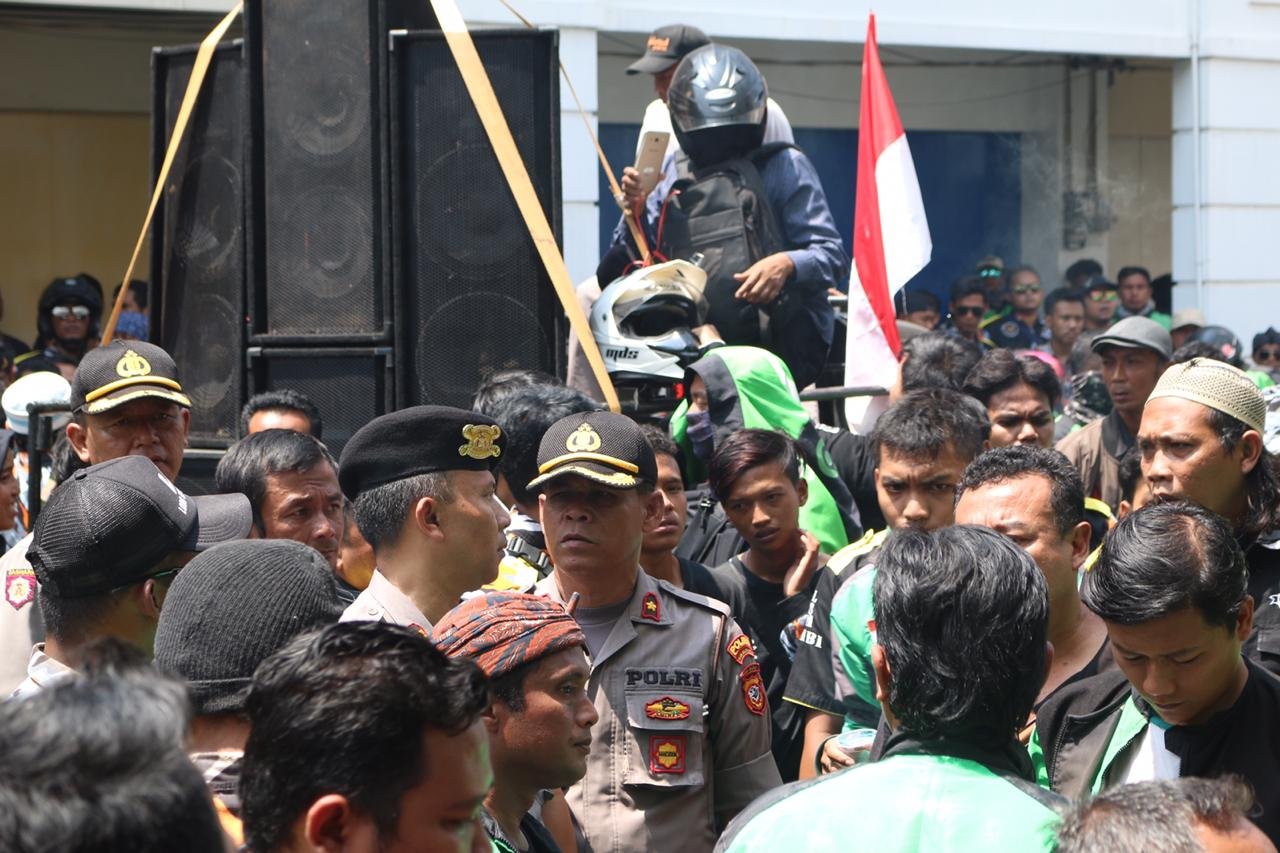 Kapolres Tasikmalaya Kota Polda Jabar Pimpin Pengamanan Unras Mitra Ojek Online Bersama Ormas GMBI di Komplek Pertokoan TIP (Tasik Indah Plaza) Tasikmalaya