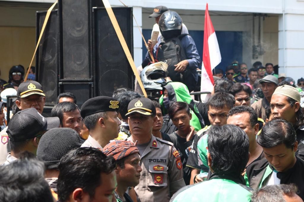 Kapolres Tasikmalaya Kota AKBP Anom Karibianto S.I.K. menyampaikan bahwa kegiatan dimulai jam 09.00 Para Mitra Ojek Online Bersama Ormas GMBI Dengan Estimasi Massa 600 Orang dengan di kawal oleh Anggota Lantas Polres Tasikmalaya Kota Berangkat Dari Titik Kumpul Di Terminal Lama Cilembang Menuju Kantor Gojek Indonesia Priangan Timur Dengan Menggunakan Sepedah Motor Dan Satu Mobil Komando Menuju Lokasi Sampai Sekitar jam 10.30 Wib Di Kantor Gojek Indonesia Priangan Timur Komplek Pertokoan TIP(Tasik Indah Plaza) No. 31.Jl. HZ. Mustofa Kel. Kahuripan Kec. Tawang Kota Tasikmalaya.