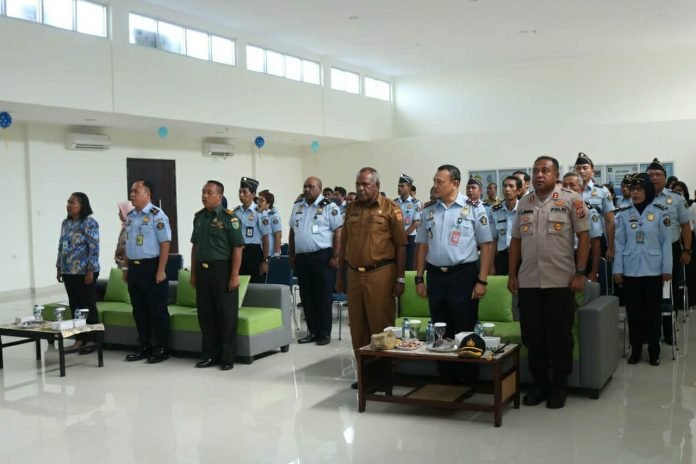 Jayapura Kota – Kepala Kepolisian Resor Kota Jayapura Kota AKBP Gustav R. Urbinas, SH., S.IK., M.Pd menghadiri pencanangan Zona Integritas Wilayah Bebas dari Korupsi (WBK) menuju Wilayah Birokrasi Bersih dan Melayani (WBBM) dan penandatangan komitmen bersama menuju Wilayah Birokrasi Bersih Melayani di Kantor Imigrasi Kelas I TPI Jayapura, Senin (3/2).