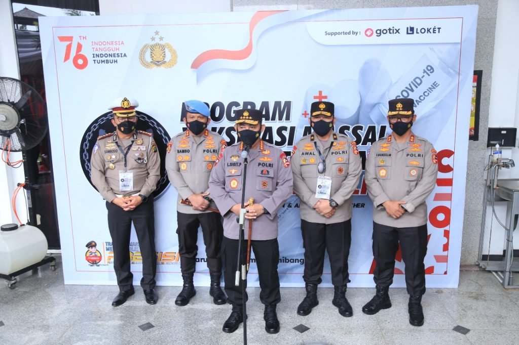 “Saya memberikan kesempatan kepada seluruh angkatan yang ada di kepolisian untuk ikut berkontribusi melaksanakan akselerasi vaksinasi, sehingga target pemerintah mewujudkan herd immunity bisa tercapai,” ucap Sigit.