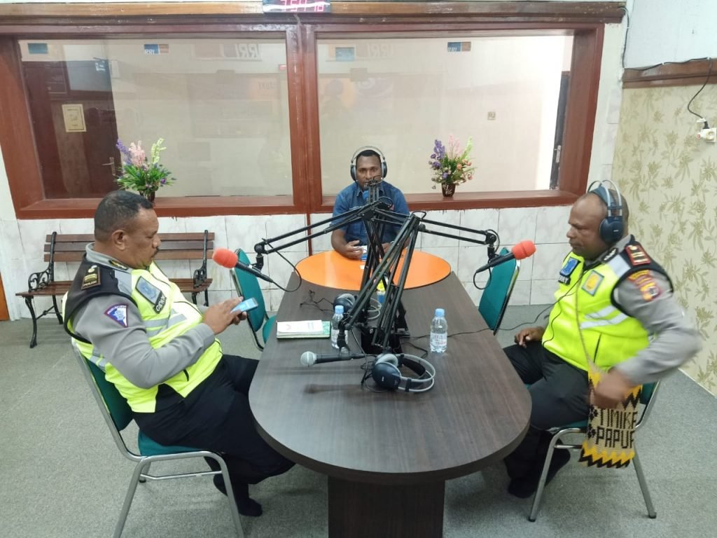 Merauke – Kepala Kepolisian Resor Merauke AKBP A. Ary Purwanto, Sik Melalui Kasat Lantas Polres Merauke Iptu Ferry M. Mehue yang didampingi Iptu Gidion Tehuayo, S.IP bertindak sebagai Narasumber dalam pelaksanaan Patroli Udara di Studio LPP RRI Pro I Merauke jalan Ahmad yani Merauke. Rabu, (26/2/2020).