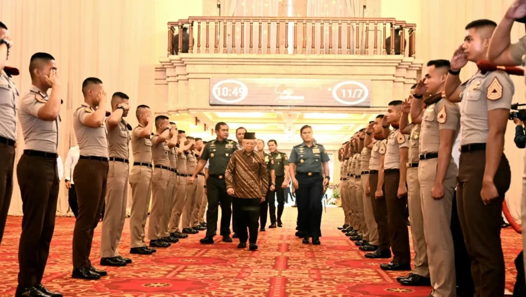 Jakarta, – Wakil Presiden (Wapres) K.H. Ma’ruf Amin siang ini, Kamis (11/07/2024) memberikan pembekalan kepada Calon Perwira Remaja (Capaja) Tentara Nasional Indonesia (TNI) dan Kepolisian Negara Republik Indonesia (Polri) 2024, di Balai Sudirman, Tebet, Kota Jakarta Selatan.
