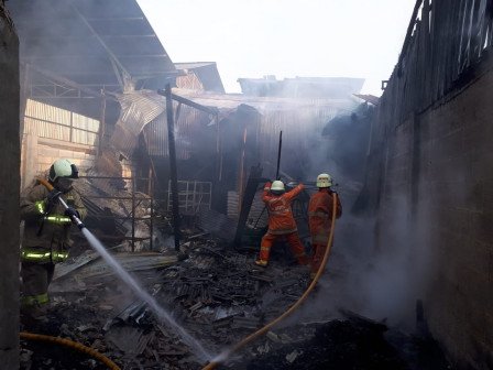Kebakaran yang terjadi di pabrik helm, Jalan Lingkungan 3 RT 004/09, Tegal Alur, Kalideres, berhasil dipadamkan petugas Suku Dinas Penanggulangan Kebakaran dan Penyelamatan (Sudin Gulkarmat) Jakarta Barat.
