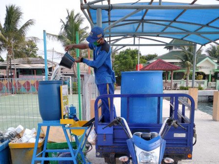 Sementara itu, Koordinator Satgas Sudin SDA Kelurahan Pulau Kelapa, Slamet menambahkan, petugas melakukan pengisian sarana cuci tangan di seluruh wilayah baik yang ada di dermaga, halaman rumah warga, fasilitas umum, rumah ibadah, kantor pemerintahan, dan sekretariat warga.