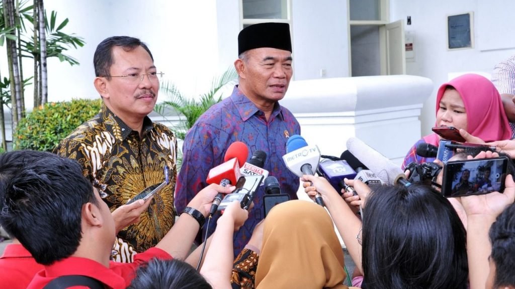 Menteri Kesehatan Terawan Agus Putranto dan Menteri Koordinator bidang Pembangunan Manusia dan Kebudayaan Muhadjir Effendi di Istana Negara, Jakarta, Senin, 24 Februari 2020.
