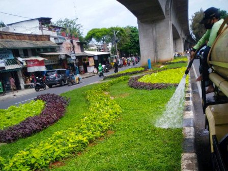 Kolong rel Lintas Raya Terpadu (LRT) sepanjang 800 meter mulai dari Jalan Balap Sepeda, Rawamangun hingga Jl Raya Kayu Putih, Pulogadung, Jakarta Timur, dipercantik dengan aneka jenis tanaman hias.