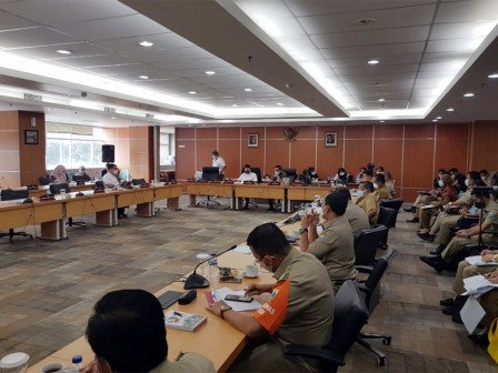 Komisi A DPRD DKI Jakarta menggelar rapat kerja bersama lima wali kota dan bupati Kepulauan Seribu, Selasa (6/4). Rapat membahas evaluasi dan penyerapan anggaran triwulan I tahun anggaran 2021.