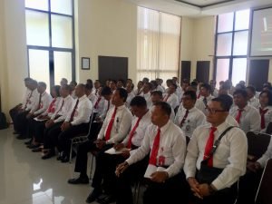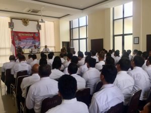 Direktur Reserse Narkoba Polda Bali, Kombes Pol Drs Ida Bagus Komang Ardika S.H, dengan para pejabat dan seluruh anggota Ditreserse Narkoba Menerima Kunjugan Kerja Direktur IV Ditipid Narkoba Mabes Polri di Gedung Rapat Serbaguna Sat Brimob Polda Bali, Senin.(27/1/2020).