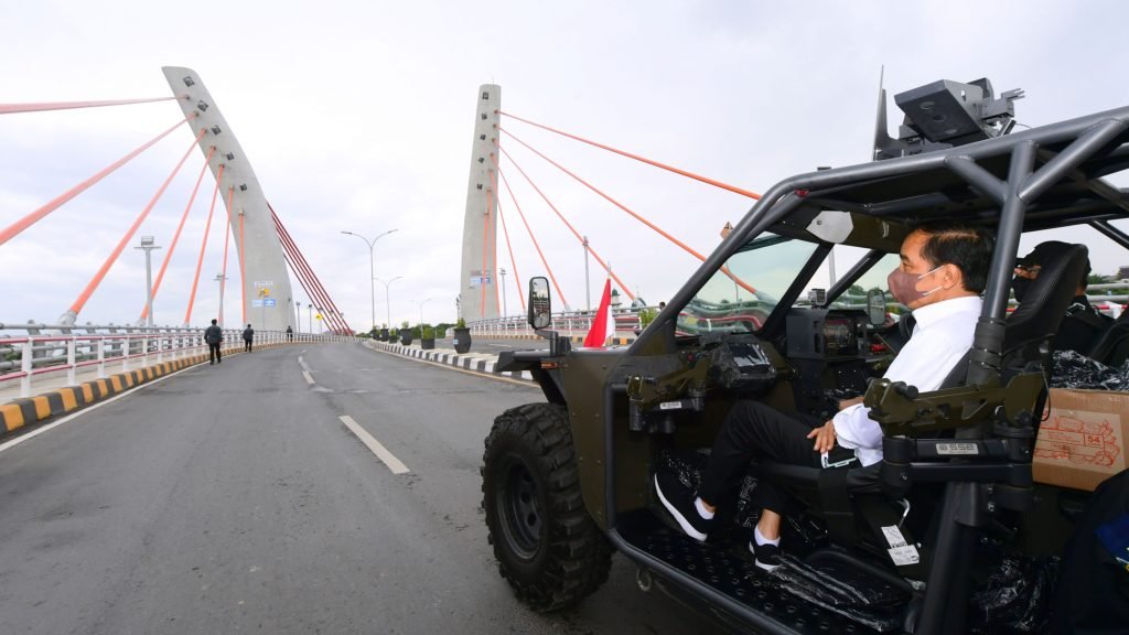 Sebelum kembali ke Jakarta, Presiden Joko Widodo meninjau sekaligus meresmikan Jembatan Sei Alalak yang ada di Kota Banjarmasin.