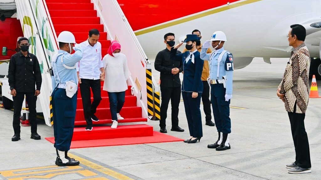 Sebelumnya, Presiden Jokowi dan rombongan lepas landas dari Pangkalan TNI AU Halim Perdanakusuma, Jakarta, sekitar pukul 07.00 WIB.