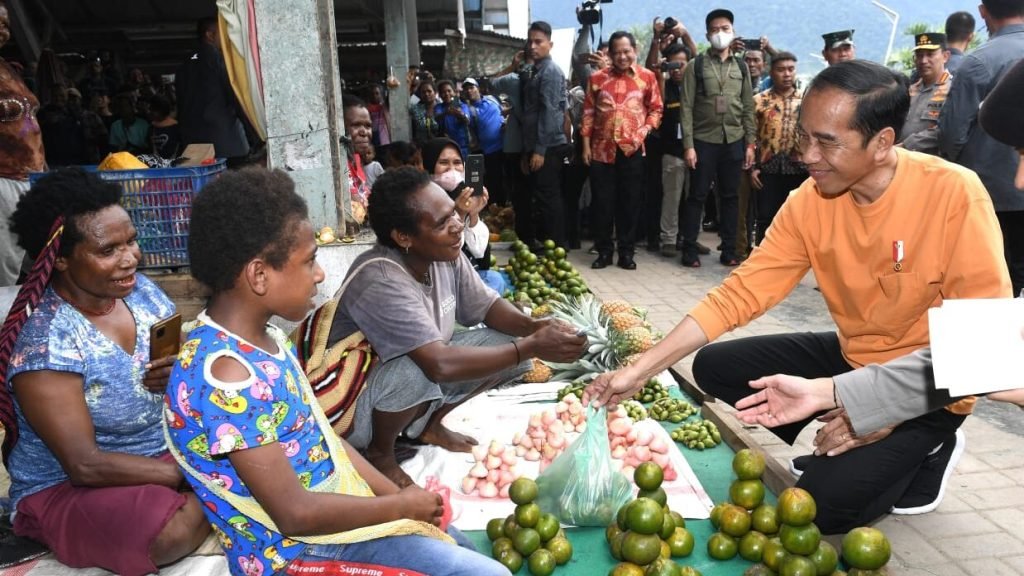 Presiden Joko Widodo mengunjungi Pasar Pharaa, Kecamatan Sentani, Kabupaten Jayapura, pada Jumat, 7 Juli 2023. Kunjungan tersebut dilakukan dalam rangka mengecek secara langsung harga kebutuhan pokok yang ada di Pasar Pharaa.