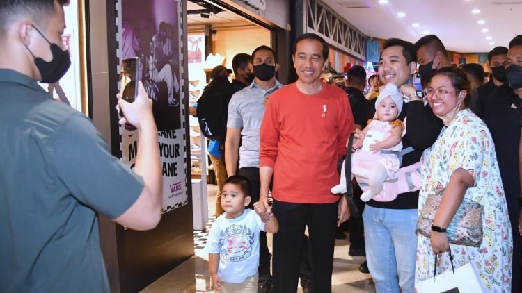 Malam kedua di Kota Medan, Presiden Joko Widodo mengunjungi DeliPark Mall, Kota Medan, Provinsi Sumatra Utara, pada Kamis, 9 Februari 2023. Kehadiran Presiden Jokowi bersama kedua cucunya, Sedah Mirah dan Panembahan Al Nahyan, serta Bobby Nasution disambut antusiasme pengunjung di sana.