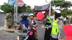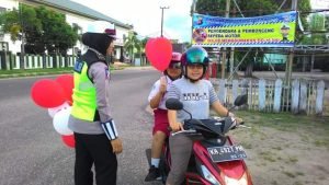 Kasat Lantas Polres Seruyan AKP Johari Fitri Casdy, S.I.K mengatakan Unit Dikyasa Satlantas Polres memberikan balon kepada anak-anakn yang sudah menggunakan helm sebagai bentuk taat berlalu lintas.