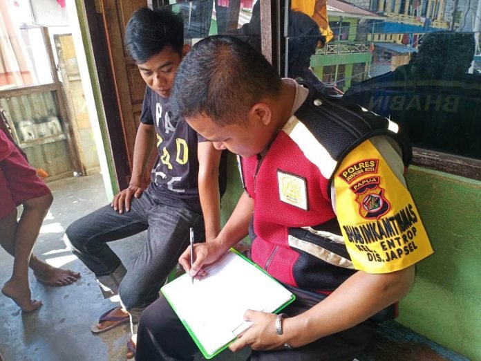 Jayapura – Sejumlah Bhabinkamtibmas Polsek Jayapura Selatan di Jajaran Polresta Jayapura Kota melaksanakan sambang atau program Door To Door System atau lebih dikenal dengan DDS.