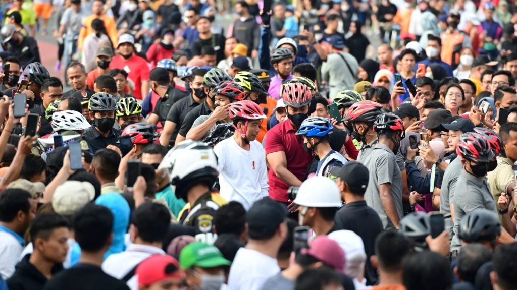 Presiden Joko Widodo menghabiskan pagi dengan bersepeda di kawasan hari bebas kendaraan bermotor atau car free day (CFD) Sudirman-Thamrin, Jakarta, pada Minggu, 15 Januari 2023. Sekira pukul 07.20 WIB, dengan mengenakan kaus berwarna putih yang dipadukan dengan rompi berwarna biru dongker, Presiden Jokowi berangkat dari Istana Merdeka menuju kawasan CFD mengendarai sepeda bambu miliknya.