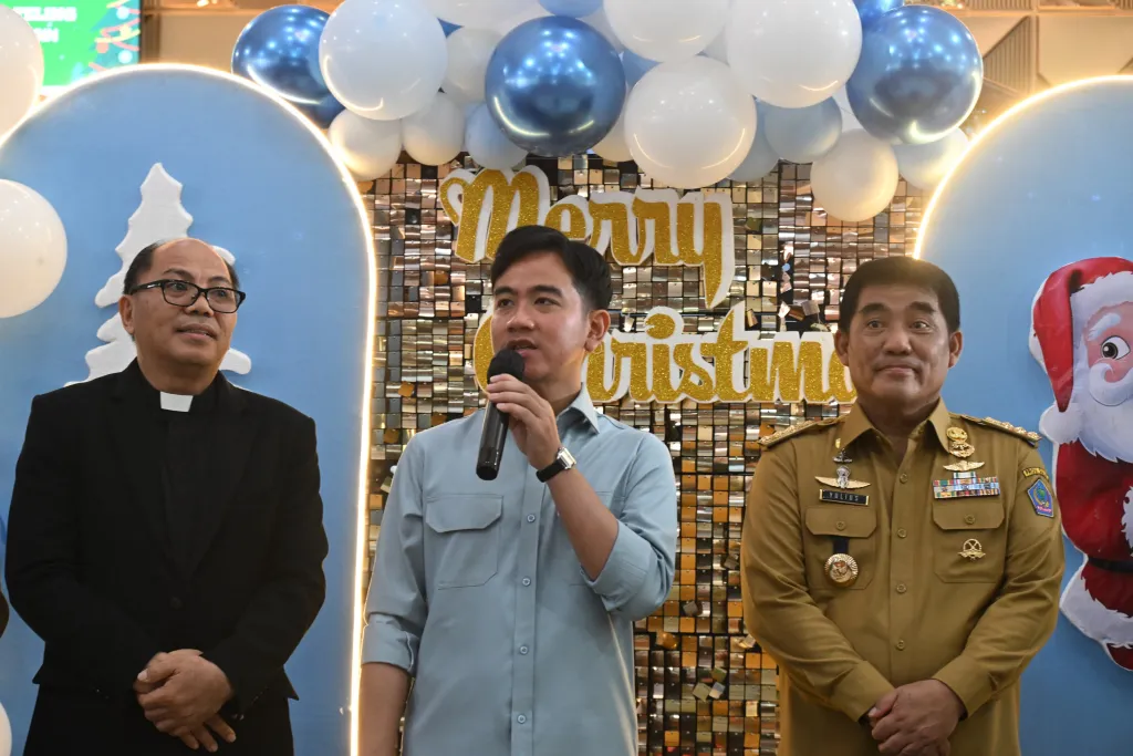 Usai meninjau Pasar Bersehati untuk memastikan ketersediaan dan stabilitas harga pangan menjelang Natal dan Tahun Baru, Wakil Presiden (Wapres) Gibran Rakabuming melanjutkan rangkaian kunjungan kerjanya dengan mengunjungi GPdI (Gereja Protestan di Indonesia) Pusat Sam Ratulangi, Jalan Sam Ratulangi No. 38, Wenang Utara, Kecamatan Wenang, Kota Manado, Provinsi Sulawesi Utara (Sulut), Selasa (23/12/2025). Kunjungan tersebut merupakan