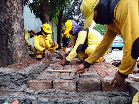 Selain memperbaiki trotoar, lanjut Heru, tujuh personel pasukan kuning juga membersihkan keberadaan tali-tali air yang rusak atau tersumbat di sekitar jalan tersebut.
