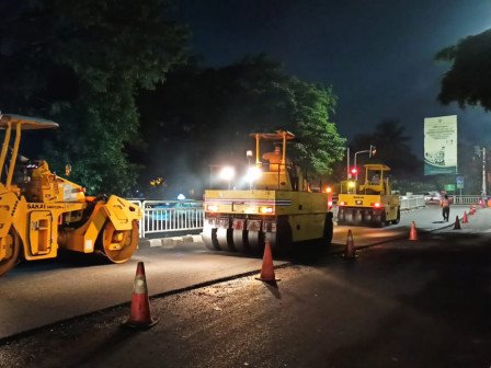 “Perbaikan jalan kita lakukan di malam hari agar tidak mengganggu arus lalu lintas. Karena kalau siang lalu lintasnya cukup padat,” kata Ilham.