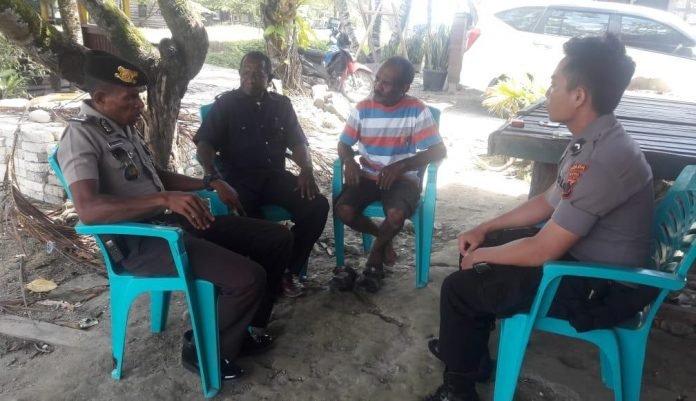 “Dalam kegiatan patroli dialogis tadi, kami menyambangi kediaman Kepala Kampung Khemon Jaya Sdr. Yan C. L. Watopa, dan menyampaikan pesan serta imbauan Kamtibmas. Kami juga melakukan Sosialisasi Program Pra Bintara Noken TA. 2020 kepada Kepala Kampung, dimana program tersebut, khusus untuk Putera Asli Papua, dengan persyaratan tinggi badan 160 cm, usia maksimal 24 tahun untuk lulusan SLTA/sederajat, usia 25 tahun untuk lulusan D-III dan usia 26 tahun untuk lulusan D-IV/S-I,” terang Kasat Samapta.