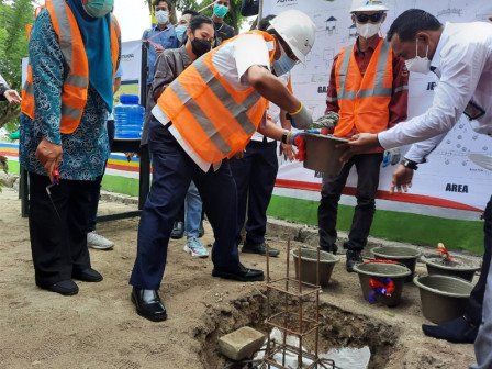 Bupati Kepulauan Seribu, Junaedi melakukan groundbreaking pembangunan kawasan wisata Kampung Jepang di Pantai Sakura, Kelurahan Pulau Untung Jawa, Kecamatan Kepulauan Seribu Selatan.