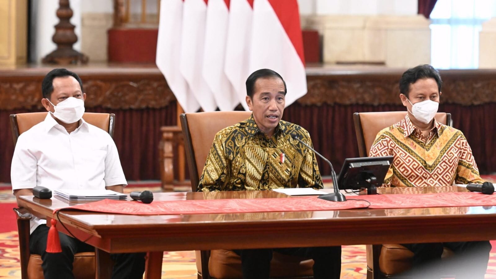 “Ini semuanya berada di bawah standar dari WHO. Seluruh kabupaten/kota di Indonesia saat ini berstatus PPKM level 1 di mana pembatasan kerumunan dan pergerakan orang di tingkat rendah,” ujar Presiden.
