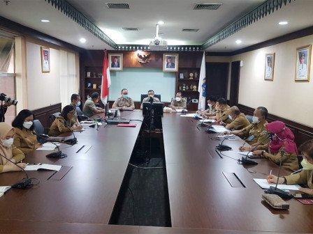 Wali Kota Jakarta Pusat, Dhany Sukma, memimpin rapat evaluasi pencegahan lonjakan kasus COVID-19, Senin (7/6).