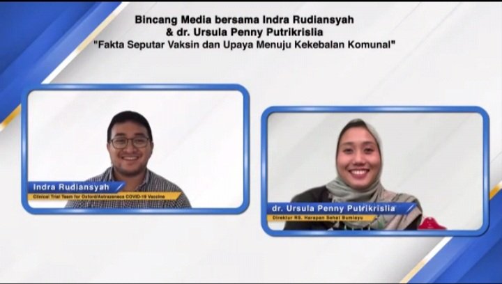Indra Rudiansyah dikenal sebagai alumni ITB dan mahasiswa di Oxford University yang menjadi bagian dari tim uji klinis vaksin Astrazeneca di Oxford, Inggris. Astrazeneca diketahui merupakan salah satu vaksin yang dipergunakan di Indonesia dan memiliki angka efikasi yang cukup tinggi. Sementara itu, dr. Ursula Penny Putrikrislia adalah President Director RS Harapan Sehat Bumiayu, Brebes.