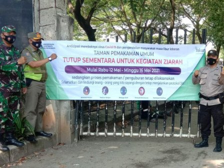 “Kami sudah memasang spanduk di pintu masuk TPU terkait penutupan sementara ini. Penjagaan TPU selama penutupan sementara melibatkan unsur tiga pilar. Kami juga sudah berkoordinasi dengan kelurahan untuk menyosialisasikan kebijakan ini,” ujar Jauhar, Selasa (11/5).