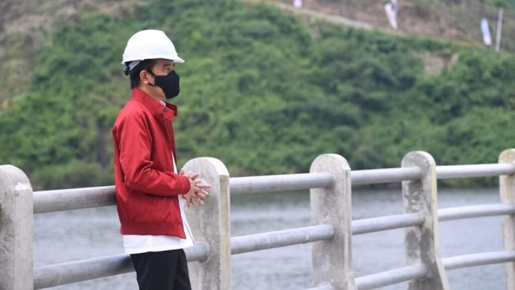 Presiden Joko Widodo meresmikan Bendungan Tapin yang berada di Kabupaten Tapin, Provinsi Kalimantan Selatan, dalam kunjungan kerjanya pada Kamis, 18 Februari 2021.