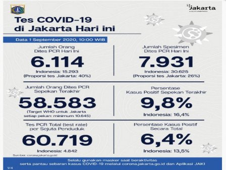 Perkembangan COVID-19 di Jakarta Per 1 September 2020