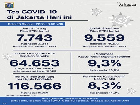 Perkembangan COVID-19 di Jakarta Per 28 Oktober 2020