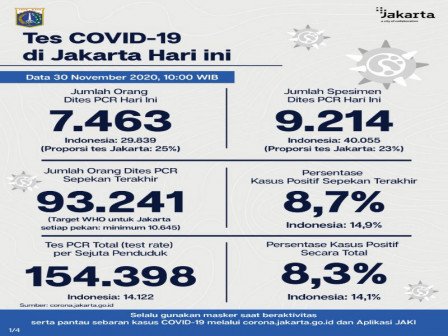 Perkembangan COVID-19 di Jakarta per 30 November 2020
