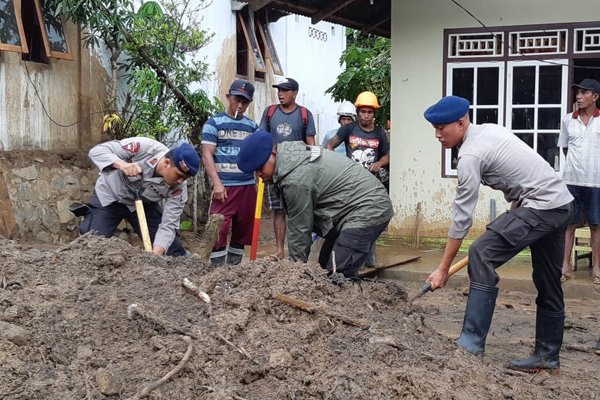 Personel terdiri dari Samapta, Polair dan Brimob tiba di lokasi sekitar pukul 13.30 WITA. Langsung menuju rumah warga setempat yang terdampak bencana untuk membersihkan sisa-sisa material banjir.
