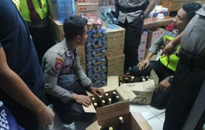 Anggota Satuan Sabhara Polres Sukabumi Polda Jabar mengamankan puluhan botol minuman keras yang akan dijual dari beberapa toko di wilayah Palabuhanratu tadi malam, Sabtu (18/1/2020) Dini Hari.