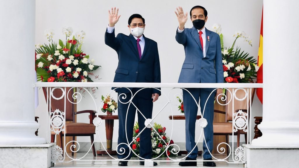 Presiden Joko Widodo melakukan pertemuan bilateral dengan Perdana Menteri Vietnam Pham Minh Chinh di Istana Kepresidenan Bogor, Jumat sore 23 April 2021.