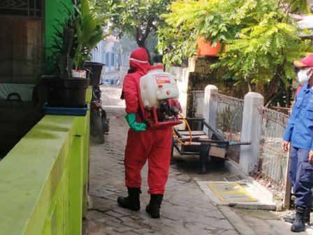 Petugas Disinfeksi Rumah Warga di Kelurahan Pulau Harapan