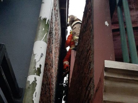 “Sarang tawon berada di ketinggian sekitar lima meter di celah antara dua tembok rumah warga. Sehingga cukup menyulitkan untuk proses evakuasinya. Petugas pun menggunakan tangga untuk mencapai ke sarang tawon tersebut,” ucap Gatot.