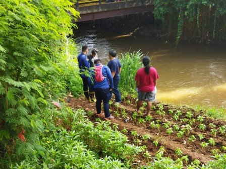 Petugas Lakukan Pencarian Korban Tenggelam di Kali Pesanggrahan