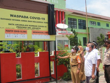 Plt Bupati Kepulauan Seribu, Junaedi, Selasa (1/9), meresmikan Tugu Waspada COVID-19 di depan Dermaga Utama Pulau Pramuka, Kelurahan Pulau Panggang, Kepulauan Seribu Utara. Tugu ini berbentuk peti mati setinggi dua meter.