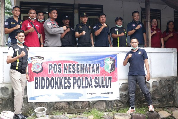 MANADO, Humas Polda Sulut – Polda Sulawesi Utara (Sulut) mendirikan Posko Bencana Alam dan Posko Kesehatan di lokasi banjir bandang dan tanah longsor, Kampung Lebo, Kecamatan Manganitu, Kabupaten Kepulauan Sangihe, Senin (06/01/2020) siang.