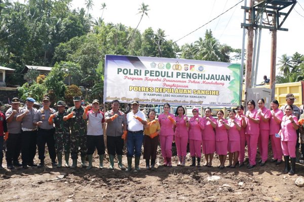 Program Kapolri Penanaman Pohon Mendukung Penghijauan ini dipimpin langsung oleh Kapolres Kepulauan Sangihe, AKBP Sudung Ferdinand Napitu.