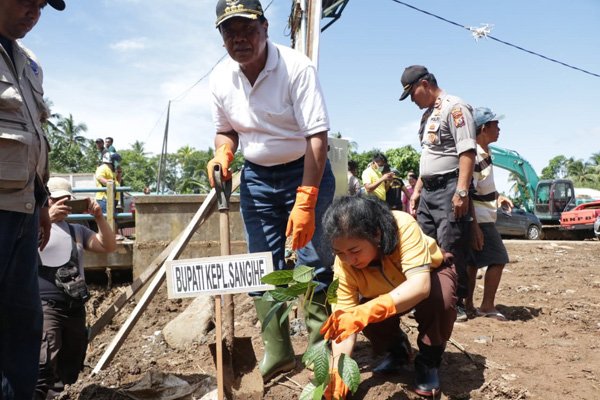 Kemudian penanaman pohon secara simbolis diawali oleh Kapolres bersama Bupati Kepulauan Sangihe, Jabes E. Gaghana, didampingi Ketua Bhayangkari Cabang Kepulauan Sangihe, Ny. Rosdiana Napitu dan Ketua TP. PKK Kabupaten Kepulauan Sangihe, Ny. Ririswati Gaghana Katamsi.