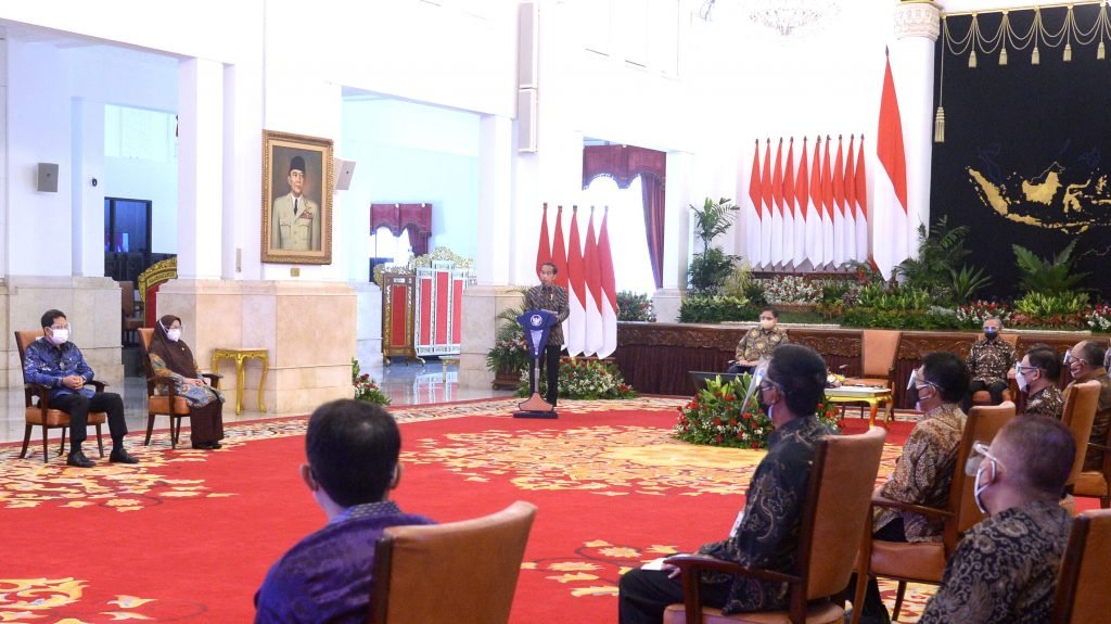 Turut hadir mendampingi Presiden dalam acara tersebut yaitu Menteri Koordinator Bidang Perekonomian Airlangga Hartarto, Sekretaris Kabinet Pramono Anung, dan Ketua Dewan Komisioner OJK Wimboh Santoso.