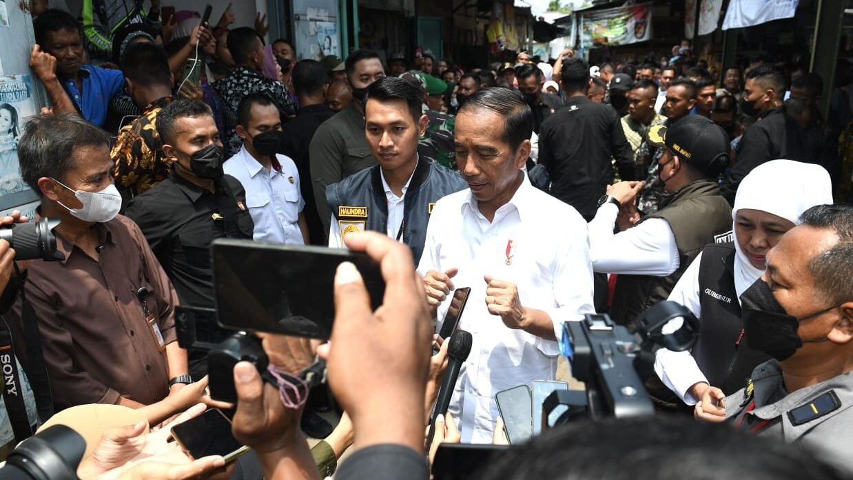 Dalam kesempatan tersebut, Presiden dan Ibu Iriana juga membagikan sejumlah bantuan sosial dan sembako kepada masyarakat penerima manfaat dan para pedagang yang ada di Pasar Sambonggede, Kabupaten Tuban.
