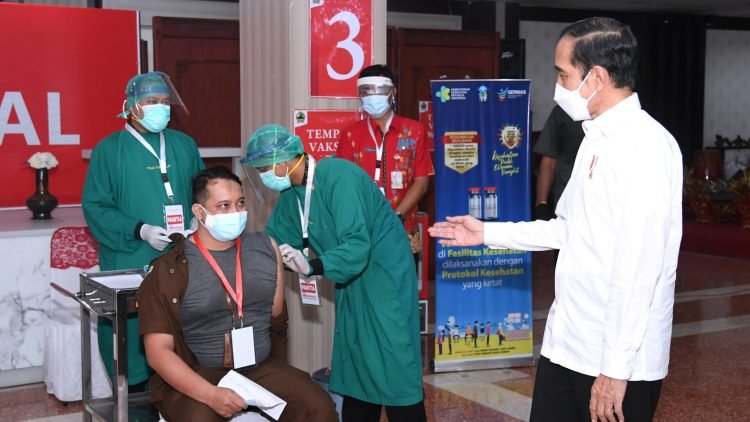 Presiden Joko Widodo Tinjau Vaksinasi Massal Bagi Pelayan Publik di Jawa Tengah