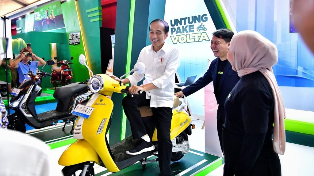 Presiden Joko Widodo melakukan peninjauan pameran kendaraan listrik Periklindo (Perkumpulan Industri Kendaraan Listrik Indonesia) Electric Vehicle Show Tahun 2024 yang digelar di JIEXPO Kemayoran, Jakarta, pada Jumat, 3 Mei 2024. Kepala Negara mengapresiasi pameran yang menjadi ajang untuk mengamati perkembangan industri kendaraan listrik di Tanah Air.