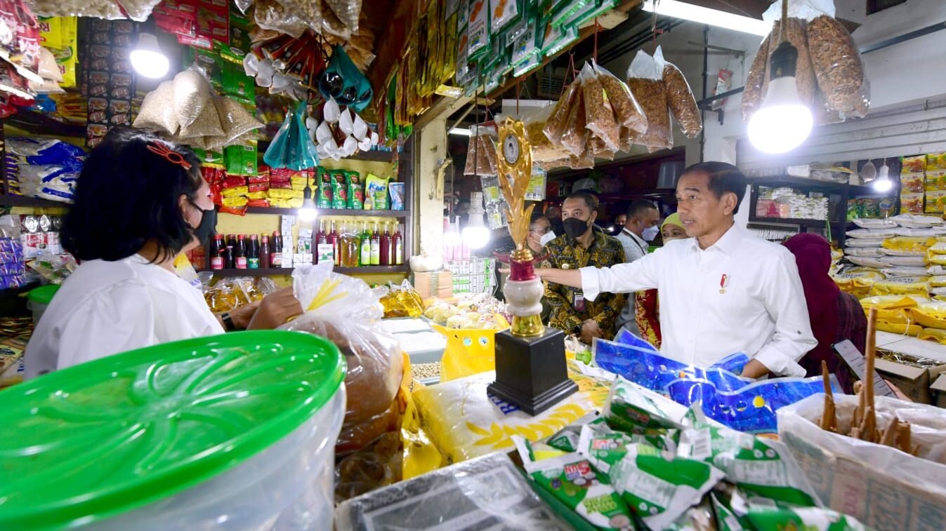 “Saya ingin mengecek barang yang sangat penting yang namanya beras. Apakah operasi dari Bulog sudah sampai ke warung, ke pasar-pasar, saya lihat sudah dan harganya baik, tadi Rp44.000 untuk 5 kilo(gram). Artinya, harga di bawah Rp9.000. Tadi kita lihat semua warung ada semuanya dan melimpah di sini,” ujar Presiden.