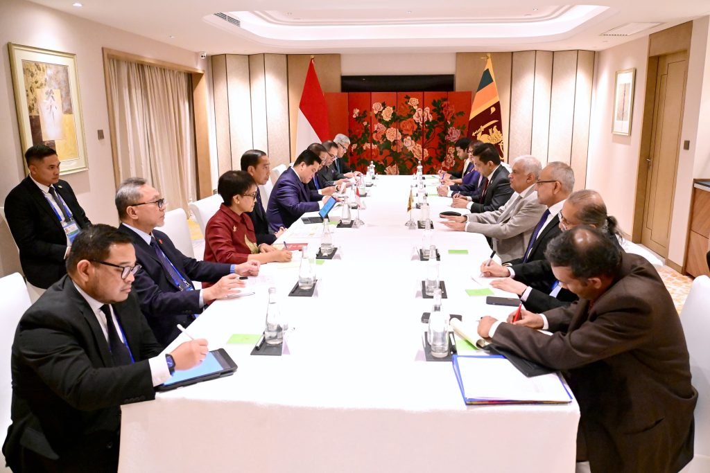 Presiden Joko Widodo melakukan pertemuan bilateral dengan Presiden Republik Sosialis Demokratik Sri Lanka, Ranil Wickremesinghe, di China World Hotel, Beijing, Republik Rakyat Tiongkok (RRT) pada Selasa, 17 Oktober 2023. Dalam pertemuan tersebut, Presiden Jokowi dan Presiden Wickremesinghe membahas peningkatan kerja sama kedua negara di berbagai bidang.