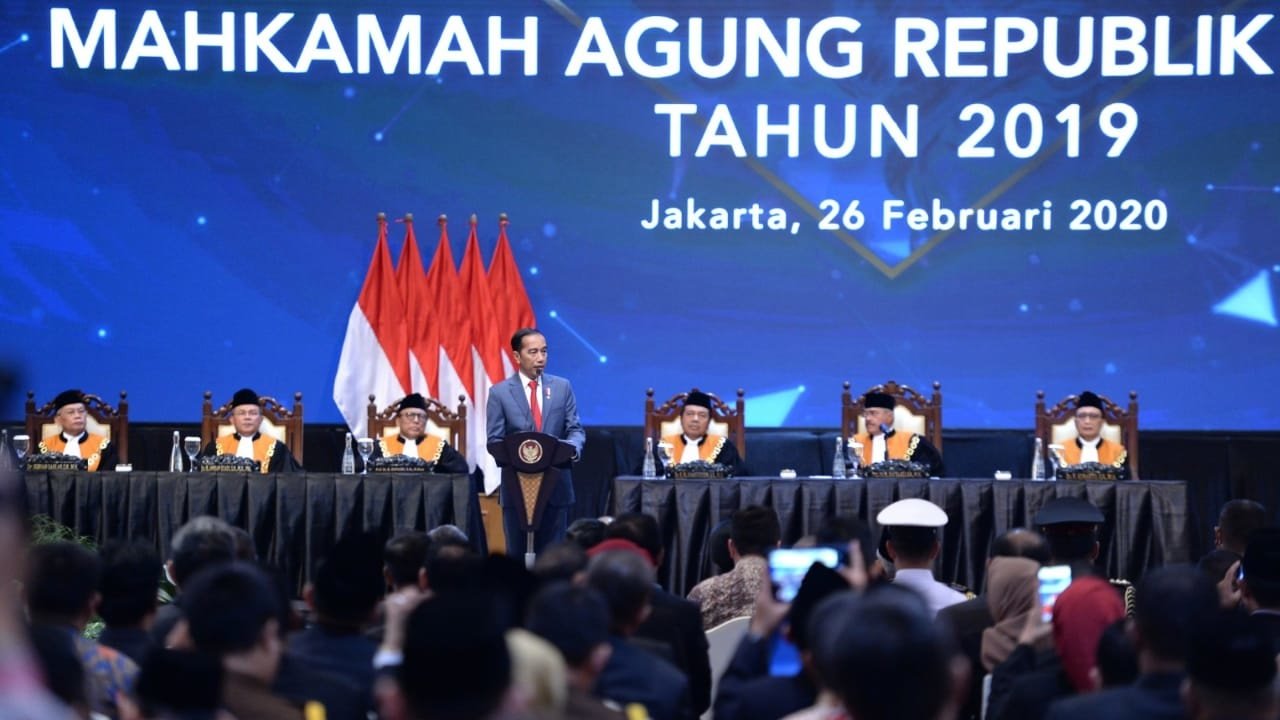 Presiden Joko Widodo hadir dalam Sidang Pleno Istimewa Laporan Tahunan Mahkamah Agung (MA) Tahun 2019 yang digelar di Jakarta Convention Center pada Rabu, 26 Februari 2020.