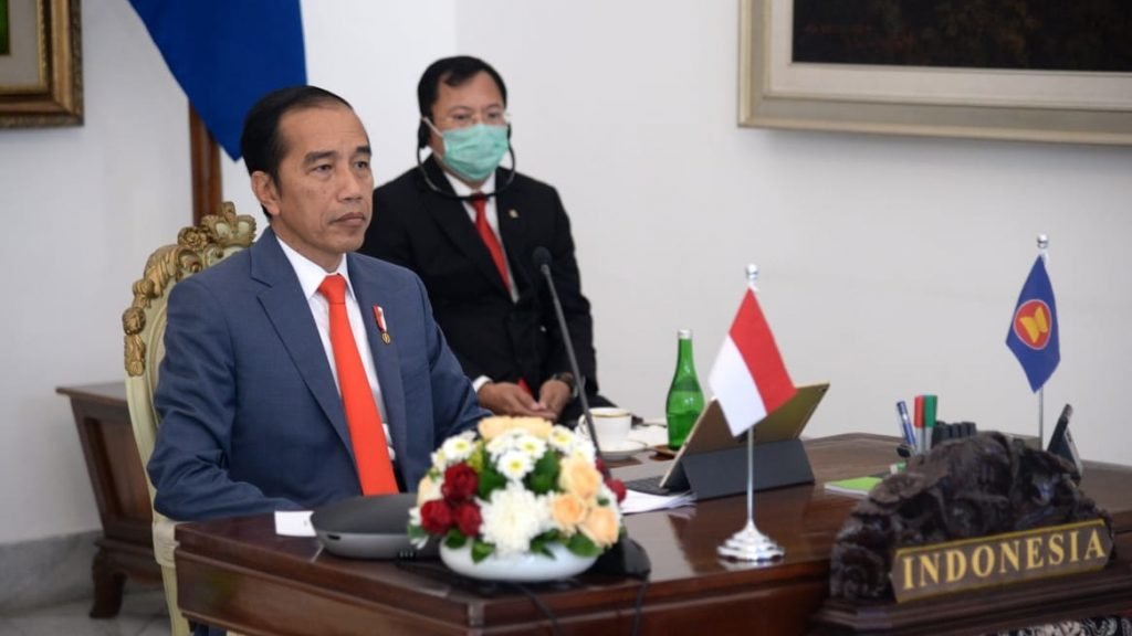 Presiden Joko Widodo mengikuti KTT ASEAN Khusus mengenai Covid-19 secara virtual dari Istana Kepresidenan Bogor, Selasa pagi, 14 April 2020.